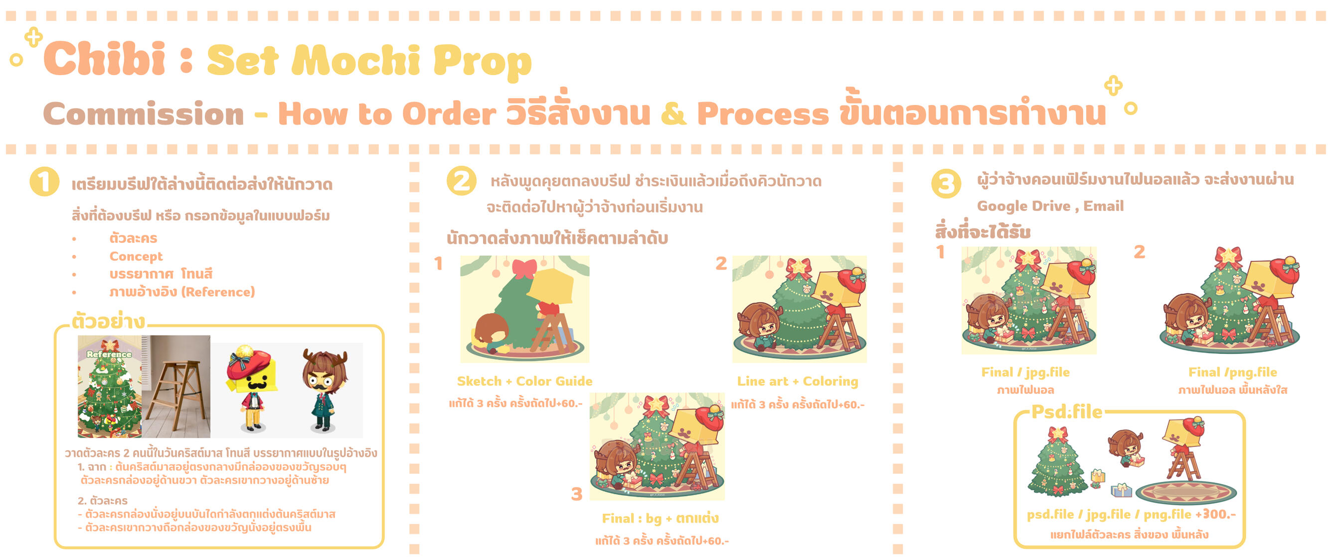 YCH จิบิ : โมจิตัวละคร - วาดตัวละครเต็มตัวหน้าตรง / วาดตามเบส (ราคาสำหรับ 1 ตัวละคร)